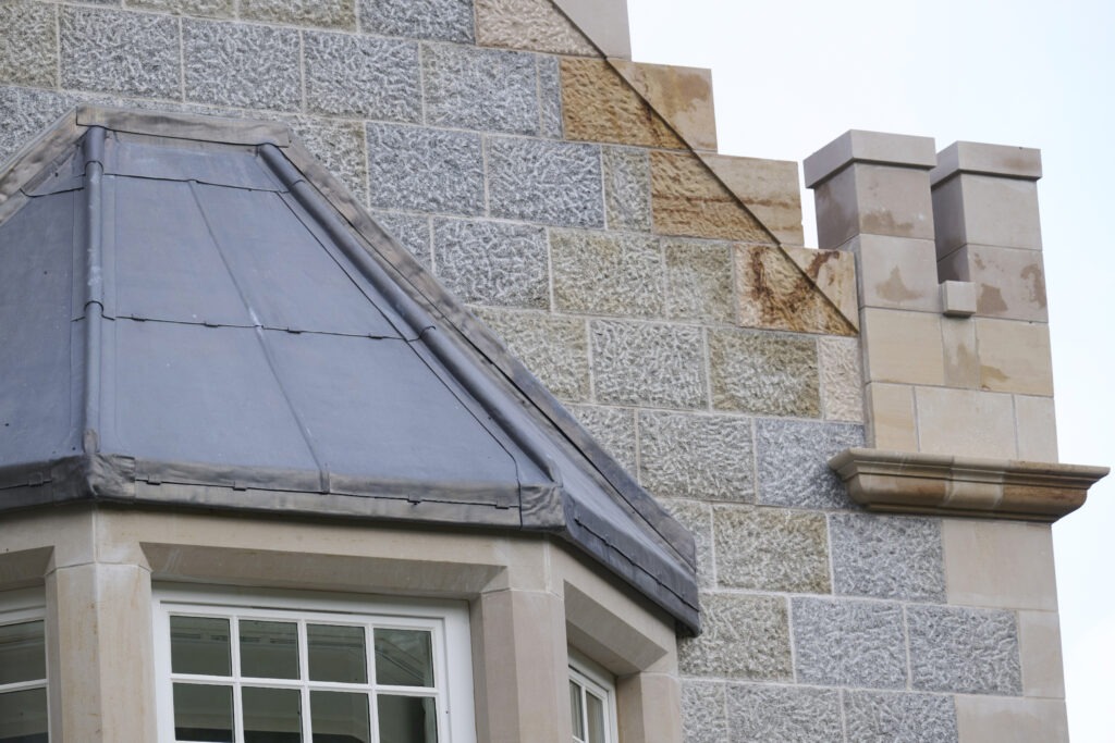 Material integrity was central to the project. Ashlar stone was sourced and detailed to align with existing coursing and tooling. Lime harling was used to reflect historic finishes to the secondary elevations. New timber sash and case windows replicate original proportions and glazing patterns, and rainwater goods were deliberately positioned to conceal junctions and maintain visual continuity. Each decision was made in dialogue with the existing fabric, ensuring the intervention feels confident, disciplined and entirely at home.